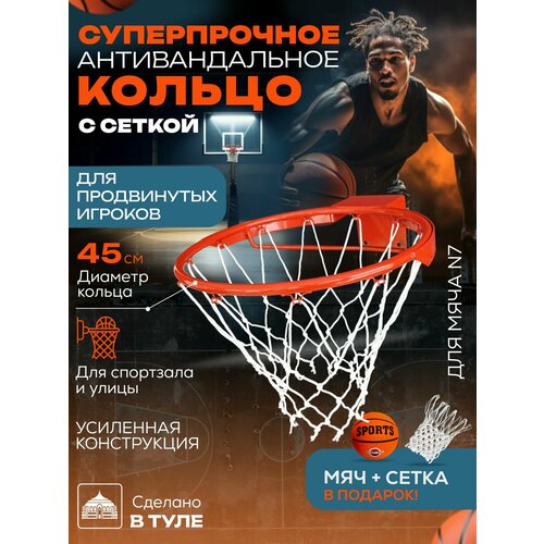 Независимо от возраста, каждый ребенок хочет испытать себя в увлекательной спортивной игре. И о чем же можно мечтать больше, чем о том, чтобы стать настоящим баскетболистом? Ведь баскетбол - это не только игра, это целая жизнь, полна движения и эмоций. Теперь ваш ребенок может окунуться в этот азарт и радость даже дома благодаря нашему удивительному - Баскетбольному кольцу с сеткой детскому для дома. Этот спортивный аксессуар подарит вашему малышу возможность познакомиться с увлекательным миром баскетбола, развивая при этом координацию движений и спортивные навыки. Каждое попадание в кольцо наполняется гордостью и радостью достижения цели. Оно представляет собой надежную конструкцию из прочного металла, которую легко установить на любую дверь в вашем доме. Его компактные размеры (диаметр 45 см) делают его идеальным вариантом для маленьких помещений и квартир. Это настоящий спасатель для дождливых дней или жаркого летнего времени, когда вы не можете выйти на улицу. Наше баскетбольное кольцо очень устойчивое, который надежно защитит стенку от возможных повреждений даже при энергичной игре. Специальная сетка обеспечивает правильный отскок мяча, что поможет развить точность и меткость вашего ребенка. Этот детский набор поставляется в комплекте со всем необходимым: баскетбольное кольцо с сеткой. Все это позволит вашему ребенку начать игру практически сразу после распаковки. Всего один шаг - и ваш ребенок оказывается в захватывающем мире баскетбола. Подарите ему баскетбольное кольцо с сеткой - отличный выбор для активного отдыха дома или на улице. Эта игрушка из прочного материала станет лучшим другом вашего ребенка, вдохновляя его на большие победы и достижения. Висеть на кольце не рекомендуется. Надоело менять кольца на площадке во дворе, хулиганы постоянно их гнут и ломают, теперь сделать это будет намного сложнее. Баскетбольное антивандальное кольцо диаметр 45 см, изготовлено не из трубки, а из полнотелого металлического прутка, имеет двойной усиленный упор. Это впечатляющее сооружение, которое заслуживает вашего внимания. Баскетбольное кольцо антивандальное с сеткой размером 45 см - идеальный спортивный товар для всех любителей баскетбола. С этим кольцом играть становится настоящим удовольствием!