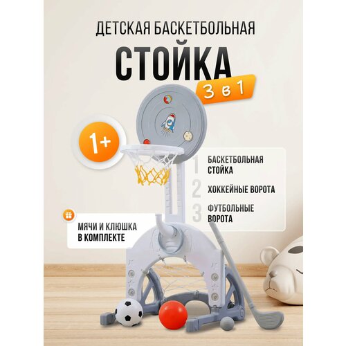 Купить Баскетбольное Кольцо Unix Kids «Space Grey», регулировка высоты, пластик, 3 мяча, клюшка с доставкой по всей России.