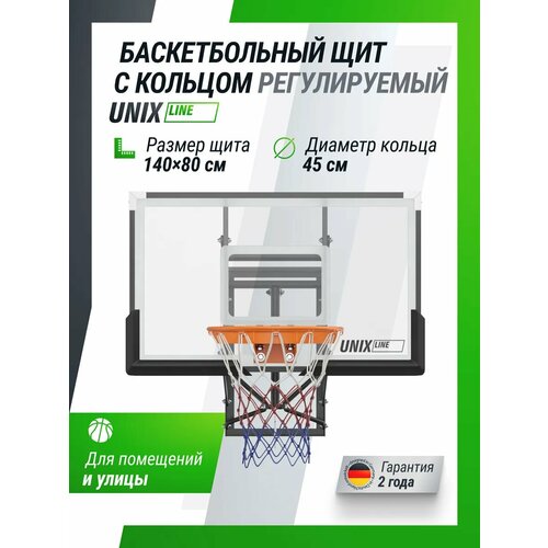 Размеры щита составляют 140 x 80 см (50x32"), предусмотрена регулировка кольца по высоте, диапазон регулировки от 2,30 до 3,05 м (от 7,5 до 10 дюймов), регулировка выполняется винтовым домкратом. Щит изготовлен из поликарбоната с толщиной 2 мм и по внешнему канту имеет стальную раму. Щит из полимерных материалов отлично выдерживает сильные удары мячом, не теряя прочность и устойчивость. Крепежная система позволяет безопасно и надежно зафиксировать конструкцию. Баскетбольный щит подходит для универсальной эксплуатации детскими и взрослыми командами. Щит обладает высокой способностью к отскоку и обеспечивает точное моделирование игровых ситуаций. Конструкция выполнена из высококачественных материалов и устойчива к погодным условиям.