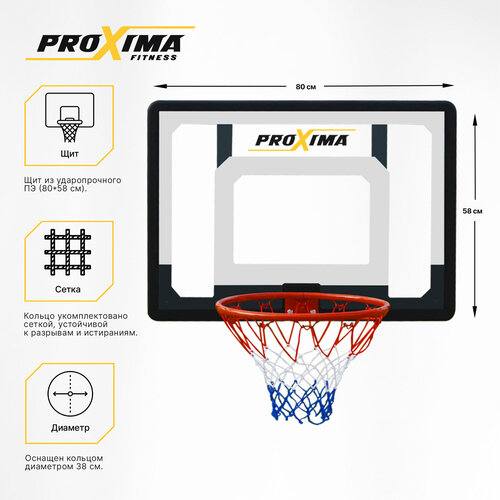 Баскетбольный щит Proxima S010 / размер щита 80х58 см/ баскетбольное кольцо 38 см: сравнение цен, характеристики, фото, актуальное наличие и цены.