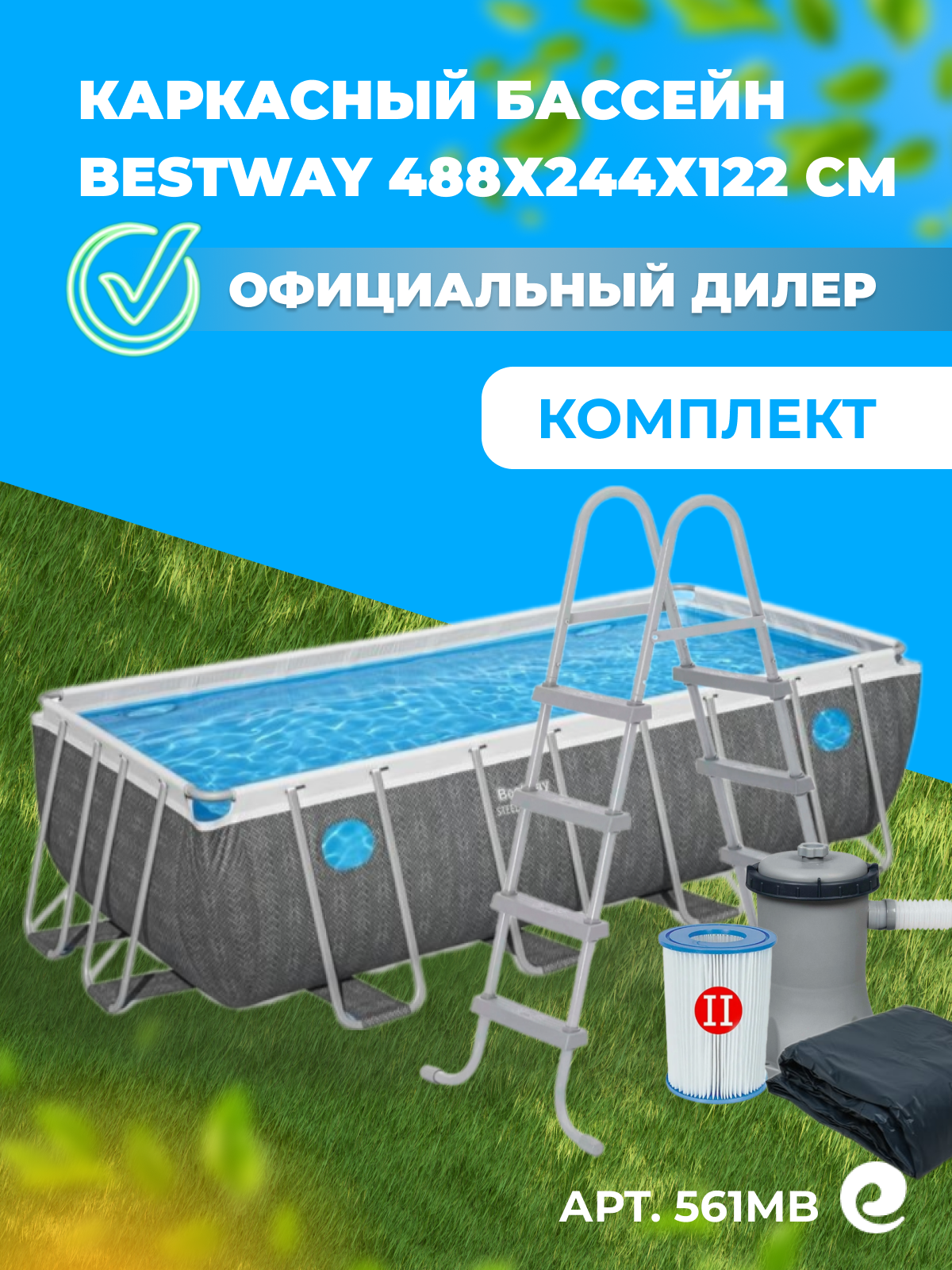 Купить Бассейн Bestway Steel Max 561MB 488х244×122, прямоугольный, каркасный, фильтр-насос в комплекте с доставкой по всей России. Бассейн Bestway Steel Max 561MB 488х244×122, прямоугольный, каркасный, фильтр-насос в комплекте: сравнение цен, характеристики, фото, актуальное наличие и цены.
