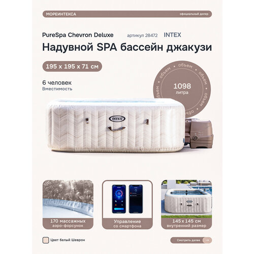 Надувная гидромассажная ванна Intex Chevron Deluxe Square на 6 человек, 195 x 195 x 71 см