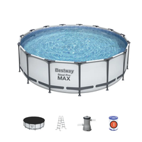 Большой каркасный бассейн от бренда BestWay Steel Pro Max размером 457х122см и объемом 16015л станет отличным развлечением для взрослых и детей. Такой бассейн прекрасно поместится на заднем участке Вашего дома, дачи или сада. Он отличается высокой прочностью и устойчивостью. Чаша летнего бассейна выполнена из высококачественного трехслойного ПВХ: два слоя плотного винила и один полиэстер, для особой прочности. Имеет металлический нержавеющий оцинкованный каркас. В комплекте к семейному бассейну идёт лестница, предназначенная для более удобного подъёма на бассейн и спуска в воду, и тент, который поможет сохранить водную поверхность в чистоте. Бассейн устанавливают на горизонтальной ровной поверхности без уклона и наличия крупных или острых предметов. Чтобы бассейн прослужил дольше, а дно не деформировалось, рекомендуется использование подстилки или подложки. Установка простая, не требуется бетонирования и подготовки ямы, необходима только плоская горизонтальная площадка. Сначала требуется собрать каркас согласно инструкции, затем проверить сливной клапан и плотно завернуть его крышку. После этого бассейн наполняют водой. Встроенный сливной клапан с адаптером для садового шланга даёт возможность слить воду в любое нужное место. Сезонный бассейн рекомендуется разбирать на холодное время года. Он не займёт много места при хранении в кладовке или чулане. У семейного бассейна достаточно простая конструкция, а время сборки и подключения составляет не более 2-3 часов. Производительность картриджного насоса составляет 3028 литров в час. Комплектация: Фильтрационный насос для бассейнов 3028 л/ч (58381), лестница (58331), тент (58038), комплект для ремонта – 1шт, инструкция – 1шт.