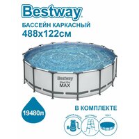 Купить Бассейн каркасный Bestway Steel Pro Max 488х122cм + фильтр-насос 5678л/ч + лестница + тент, 5612Z с доставкой по всей России.