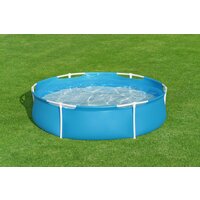 - Каркас бассейна собирается из стойких к коррозии стальных труб. - Из-за своего небольшого объема, вода в таком бассейне быстро нагревается на солнце. - Постоянная форма обеспечивается прочным металлическим каркасом. - Простая установка. Объем бассейна (90%): 580 литров (153 галл.) Простая установка в течение 10 минут силами 2-3 человек. В комплект входит: один бассейн, ремонтная заплата.