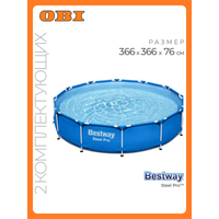 Бассейн каркасный круглый Bestway Steel Pro, 366х366х76 см, фил.-насос