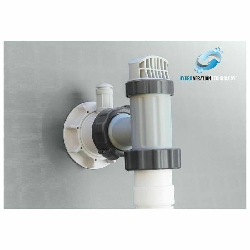 Каркасный бассейн — это отличный выбор для всей семьи. Каркас бассейна сделан из прочного металла, что позволяет выдерживать большие нагрузки. Материал бассейна выдерживает суровые погодные условия, устойчив к прямым попаданиям солнечных лучей и воздействию хлора, выдерживает давление больших объёмов воды. Встроенный сливной клапан облегчает слив воды, путём присоединения садового шланга с входящим в комплект адаптером. Таким образом, воду можно слить в любое удобное место или, например, полить сад. В комплекте с бассейном прилагается фильтр-насос. Тип картриджей для фильтр-насоса: «A».
