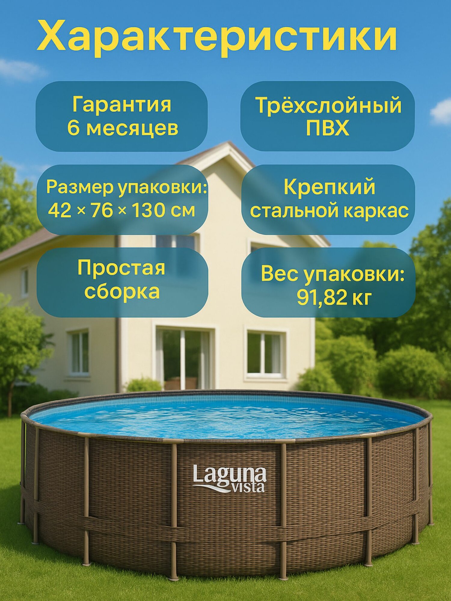 Купить Бассейн каркасный ротанг 488х132см Polygruop Laguna Vista Р20-1652-B (лестница, фильтр, тент, подложка, скиммер, набор для чистки) с доставкой по всей России. Бассейн каркасный ротанг 488х132см Polygruop Laguna Vista Р20-1652-B (лестница, фильтр, тент, подложка, скиммер, набор для чистки): сравнение цен, характеристики, фото, актуальное наличие и цены.