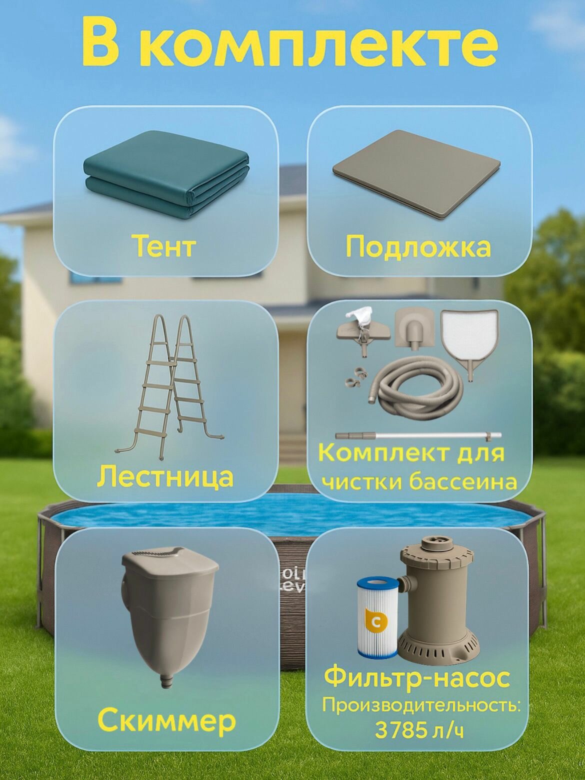 инструкция по установке бассейна фильтр-насос для очистки воды (3 800 л/ч) лестница тент подстилка под бассейн скиммер комплект для чистки бассейна De Lux