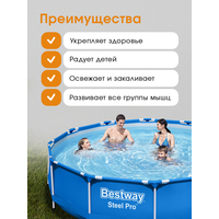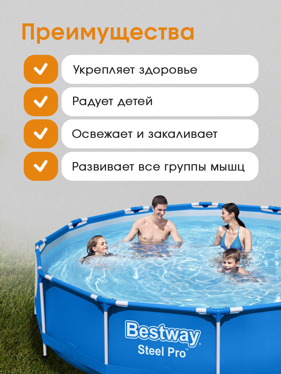 Бассейн каркасный Steel Pro Bestway 366 см x 76 см, 6473 л, синий - это современное и стильное решение для вашего сада.