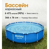 Купить Бассейн каркасный Steel Pro Bestway 366 см x 76 см, 6473 л, синий с доставкой по всей России. Бассейн каркасный Steel Pro Bestway 366 см x 76 см, 6473 л, синий: сравнение цен, характеристики, фото, актуальное наличие и цены.