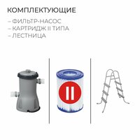 Купить Каркасный круглый бассейн 366х100 см, 9150 л, с фильтром 2006л/час и лестница без площадки 56418 с доставкой по всей России.