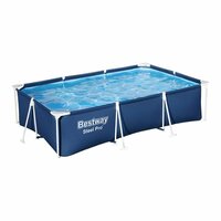 Бассейн каркасный Bestway Steel Pro 300х201х66 см - яркое дополнение ландшафтного дизайна, идеальный вариант для семейного отдыха в жаркие летние дни. Прямоугольный каркасный бассейн Bestway 56404 отличается высокой прочностью и устойчивостью. Чаша выполнена из высококачественного трехслойного ПВХ: два слоя плотного винила и между ними сетка из полиэстера для особой прочности. Цвет чаши бассейна снаружи синий, внутренняя поверхность имеет расцветку под мозаику. Каркас металлический, покрытый предотвращающим появление коррозии слоем пластика. Не требует бетонирования и подготовки ямы, все, что нужно, это плоская, горизонтальная площадка. Сезонный бассейн (рекомендуется разбирать на холодное время года) обладает простой конструкцией - может быть легко разобран и собран заново. Время сборки и подключения бассейна составляет около 20 мин. Удобный сливной клапан позволяет присоединить садовый шланг, что дает возможность слить воду в любое место. Каркасный бассейн от производителя Bestway - отличный качественный продукт. Основной особенностью этого бассейна является простая и быстрая установка, которая не займет у вас много времени и сил. При покупке каркасного бассейна Bestway вы подарите себе и вашем детям массу положительных эмоций и веселого настроения. Бассейн для взрослых и детей бествей предназначен для водных затей, для купания, плавания. Установите комплекс на дачном участке и ребенок будет проводить в нем все своем время с радостью. Бассейн детский прямоугольный универсален и подойдет как для взрослых, так и для малышей. Обязательно покажите ребенку, как можно играть, придумывайте вместе игры, пригласите друзей для веселого времяпровождения на свежем воздухе. Игровой бассейн позволит постепенно приучать к плаванию малышей, главное, чтобы они находились под присмотром. Бассейн каркасный детский водный поможет подарить незабываемые впечатления не только для детей, малышей, но и для бабушки, взрослых, которые будут наблюдать за эмоциями ребенка, а также открыть дачный сезон. Самый простой уход за бассейном и его очистка. Легко надувается и также легко сдувается, не требует серьезного мытья, достаточно протереть влажным полотенцем или промыть проточной водой. Хороший подарок для семьи, девочек, мальчиков. Каркасные бассейны очень удобно устанавливать на любом свободном участке возле частного дома или дачи. Эта серия отличается простой установкой, которая заключается в наполнении водой. Всего 10-15 минут - и спасение от жаркого солнца у Вас во дворе. Он особенно необходим людям, у которых есть маленькие дети, потому что они смогут все лето наслаждаться прохладой воды. Материал, используемый при изготовлении бассейнов этой серии, состоит из прочного материала, что обеспечивает высокую надежность и износостойкость. Каркас металлический, покрытый предотвращающим появление коррозии слоем пластика. Бассейн для дачи имеет уникальную форму и яркий дизайн, который понравится детям и взрослым. Габариты глубокого бассейна позволяют находиться в воде одновременно нескольким членам семьи. Объем семейного каркасного бассейна составляет 3300 литров воды. Также можно использовать дополнительные товары для бассейна для времяпрепровождения, такие как - круг для бассейна, надувные шарики. Вода спускается с помощью сливного клапана. На холодное вре