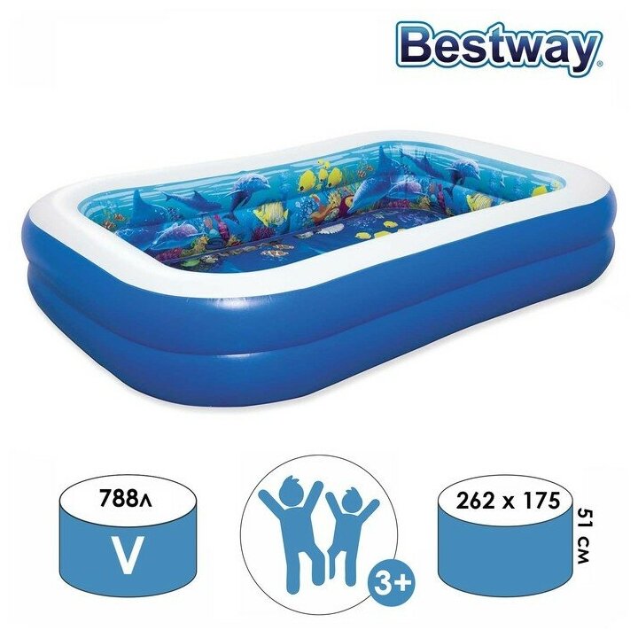 Бассейн надувной с 3D рисунком и 3D очками «Поиски сокровищ», 262 x 175 x 51 см, 54177 Bestway: сравнение цен, характеристики, фото, актуальное наличие и цены.