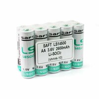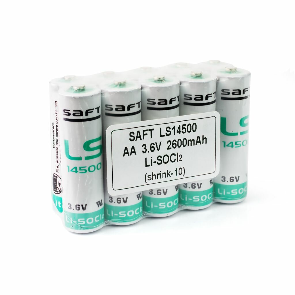 Батарейка пальчиковая SAFT LS14500 (A316/LR6/AA) Li-SOCI2 (литий-тионилхлорид) 3.6V 2600mAh - 10 штук.