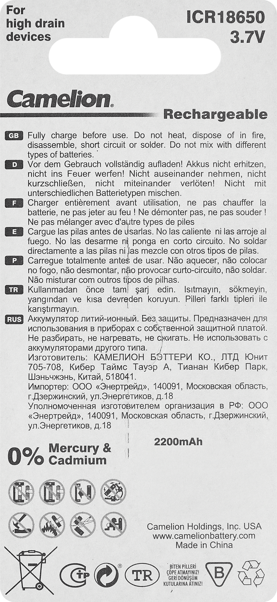 Купить Батарейка Camelion ICR18650 литий-ионная 18650 1 шт. с доставкой по всей России. Батарейка Camelion ICR18650 литий-ионная 18650 1 шт.: сравнение цен, характеристики, фото, актуальное наличие и цены.