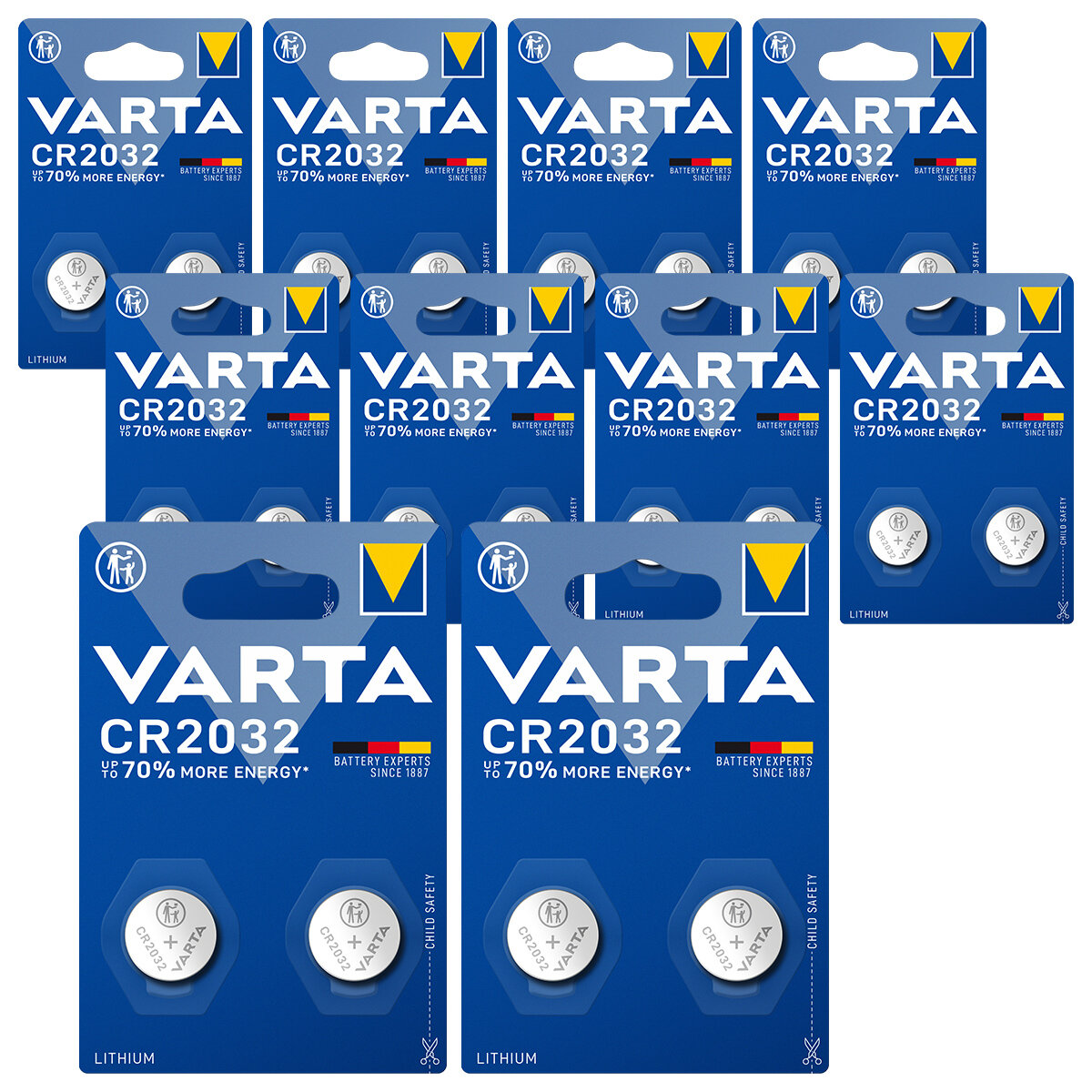 Круглая литиевая батарейка Varta CR2032 . Напряжение 3V. Применяется в качестве автономного источника питания электронных, электрических и электромеханических устройств, для которых требуются элементы питания типоразмера CR 2032 (фототехника, электронные часы, калькуляторы, светодиодные фонарики, CMOS батареи для материнских плат компьютеров и т. д.). Литиевая батарея Varta имеет низкий ток саморазряда, что обеспечивает ее длительное хранение (не менее 5 лет) без значительной потери потребительских свойств. В упаковке 20 шт.