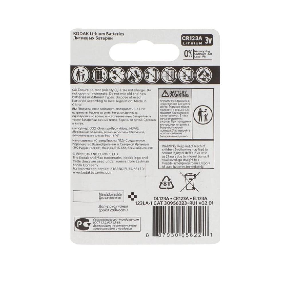 Батарейка KODAK CR123A: сравнение цен, характеристики, фото, актуальное наличие и цены.