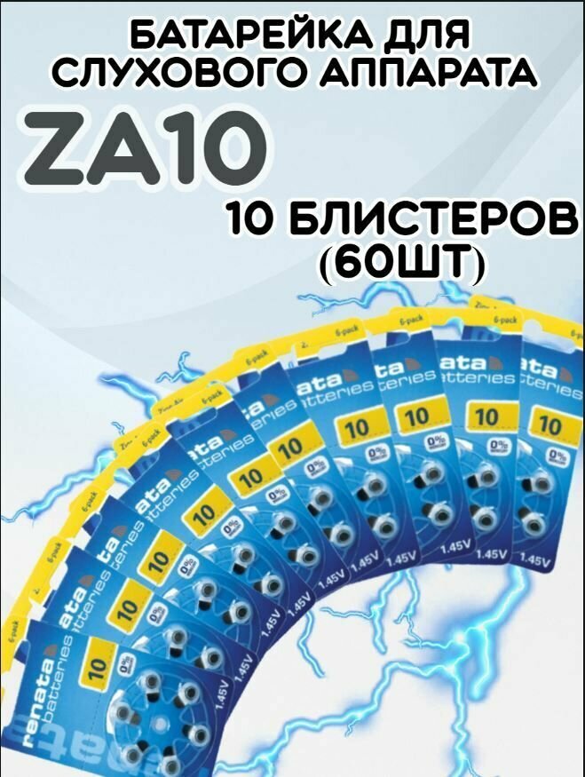 Батарейка Renata для слухового аппарата / Батарейки рената ZA10 10 блистеров(60шт): сравнение цен, характеристики, фото, актуальное наличие и цены.