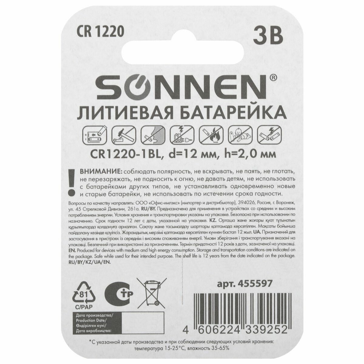 Купить Батарейка Sonnen Lithium CR1220 (блистер, 1шт.) (455597), 320 уп. с доставкой по всей России. Батарейка Sonnen Lithium CR1220 (блистер, 1шт.) (455597), 320 уп.: сравнение цен, характеристики, фото, актуальное наличие и цены.