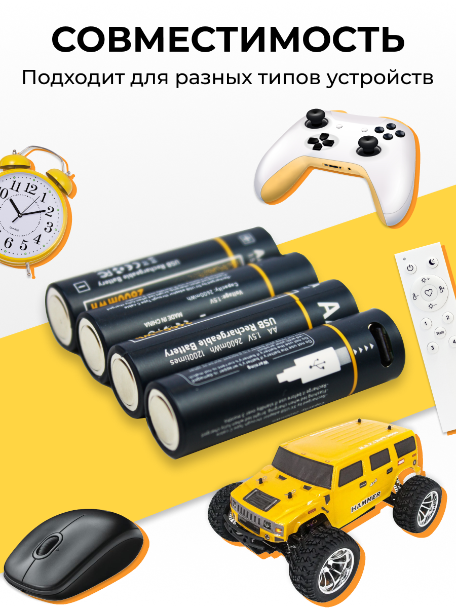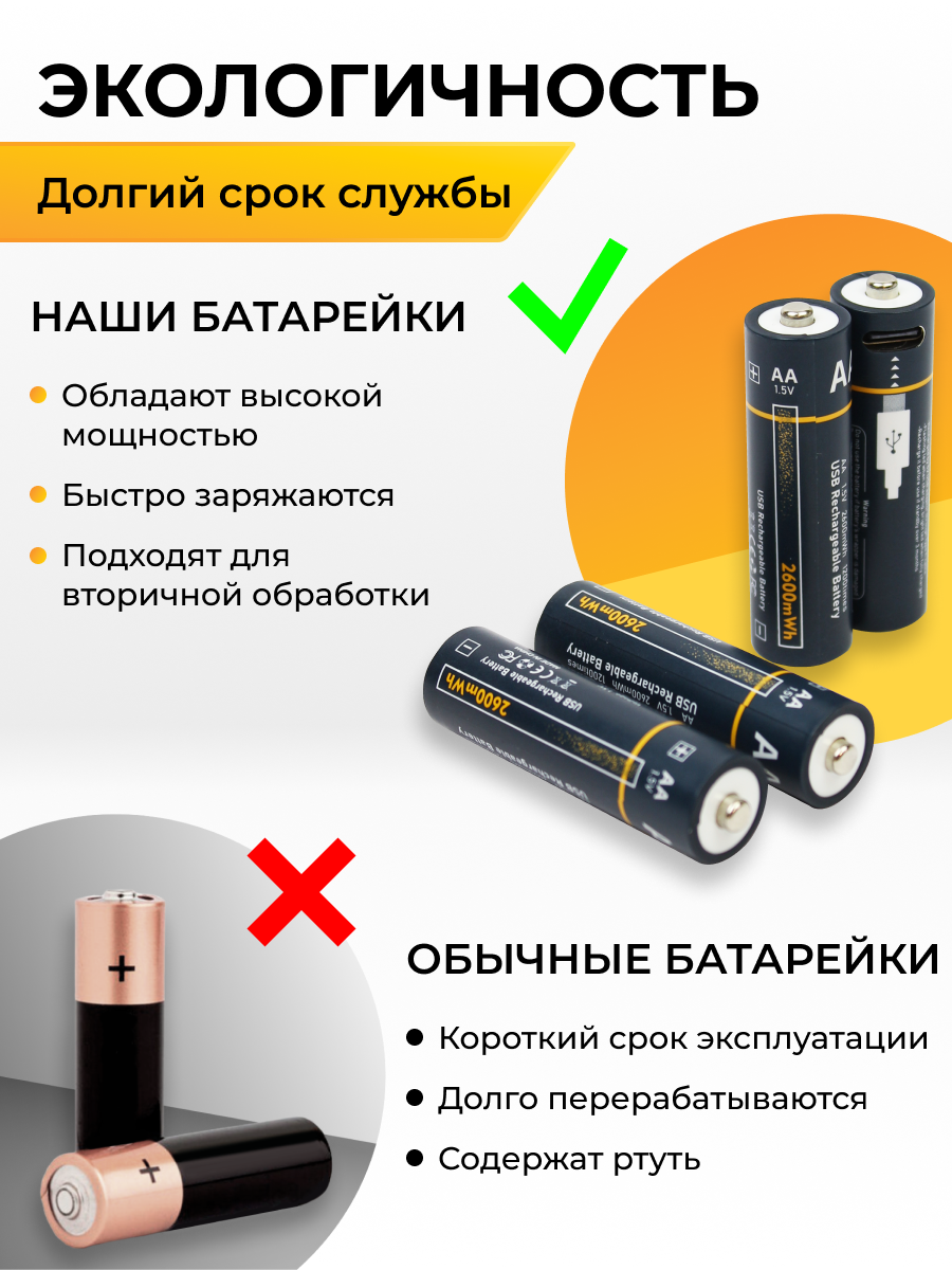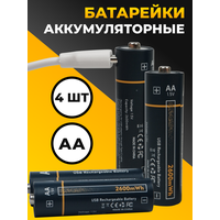 Аккумуляторные батарейки AA 4 шт. / Перезаряжаемые пальчиковые батарейки / Кабель Type-С в комплекте: сравнение цен, характеристики, фото, актуальное наличие и цены.