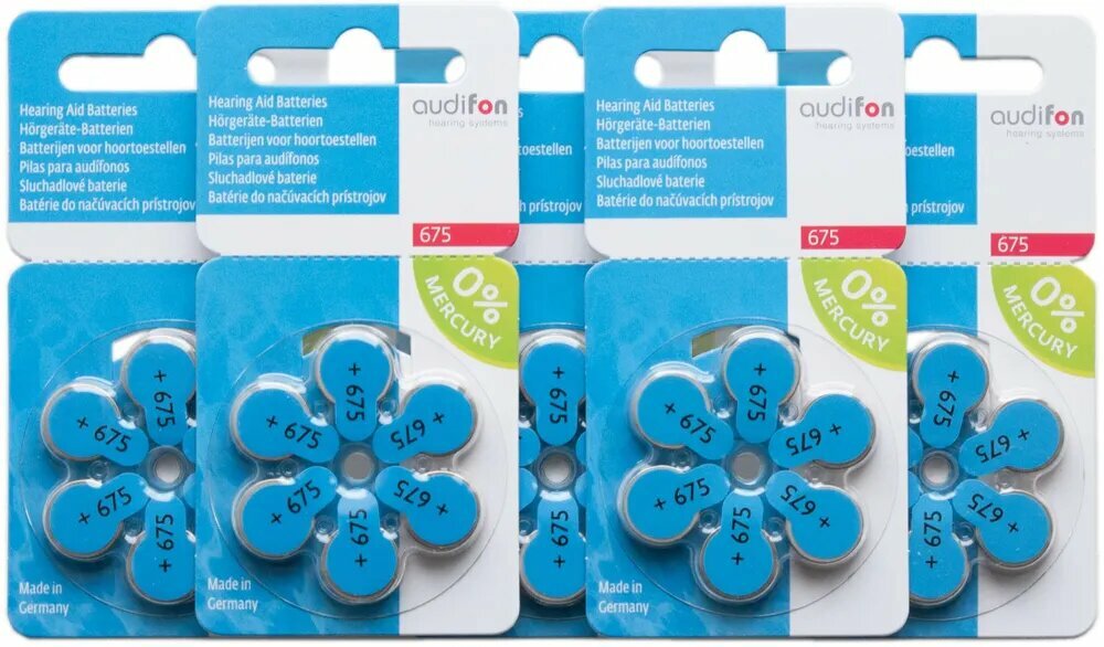 В процессе использования слуховых аппаратов актуальным вопросом остается подбор элементов питания. Наши фирменные батарейки Audifon 675 из Германии - отличный выбор для комфортного и долговременного использования. Данные батарейки обладают следующими характеристиками: