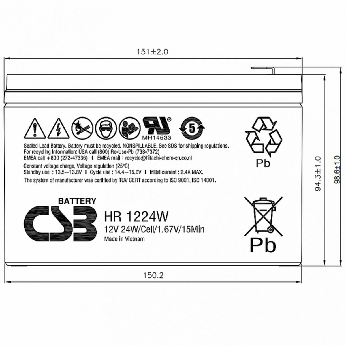 Купить CSB HR1224W Батарея HR 1224W (12V, 5.5Ah) с доставкой по всей России. CSB HR1224W Батарея HR 1224W (12V, 5.5Ah): сравнение цен, характеристики, фото, актуальное наличие и цены.