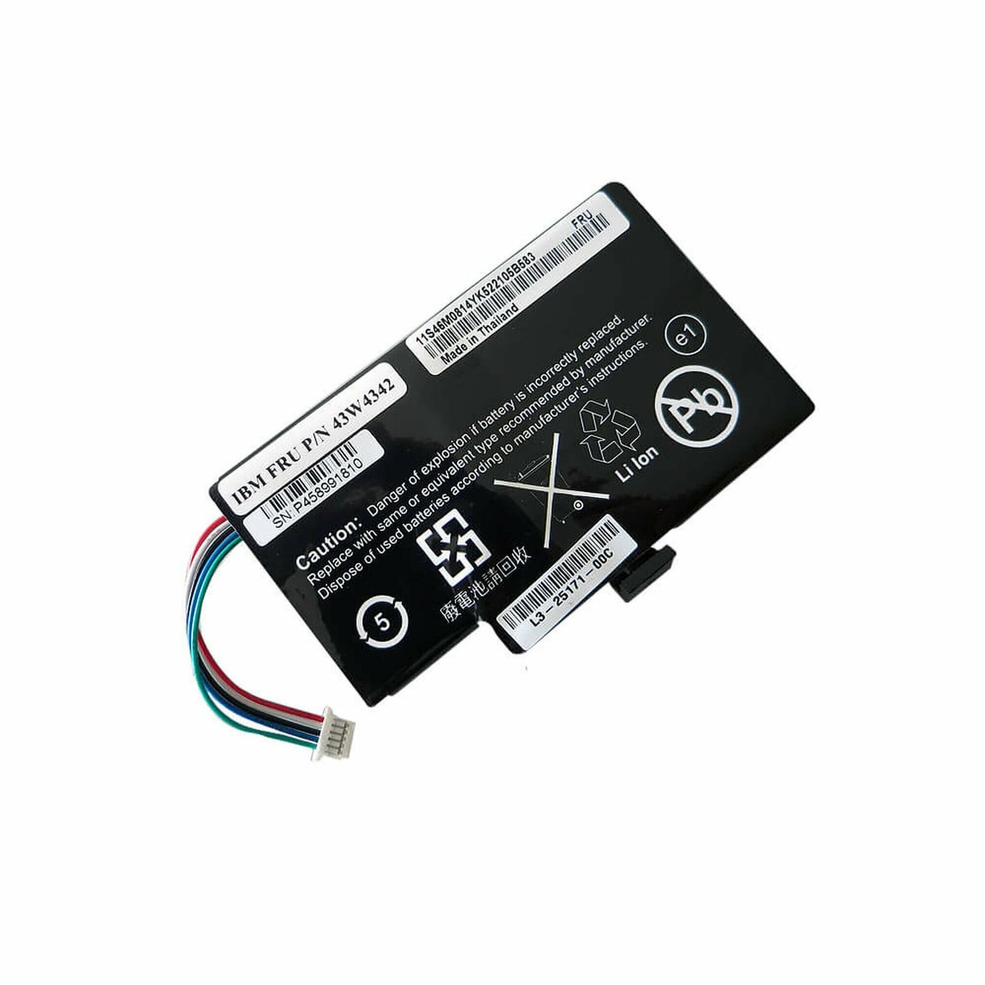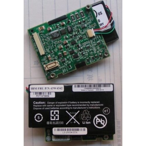 Батарея IBM BBU07 является источником питания для записи кэша в случае перебоев в электроснабжении. Модуль работает автономно и позволяет контроллеру записать данные на диски. Батарея контроллера IBM 43W4342 для контроллеров IBM ServeRAID серии M5000.
