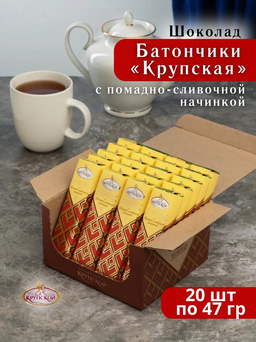 Батончик Крупская с помадно-сливочной начинкой , 20 шт по 47 гр, Крупская: сравнение цен, характеристики, фото, актуальное наличие и цены.