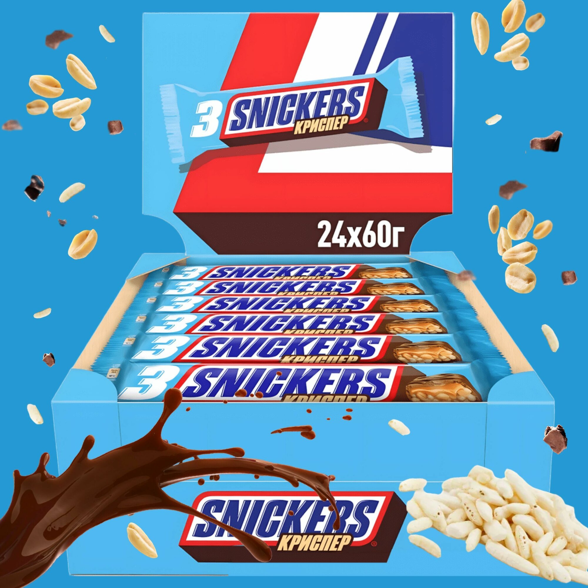 Батончик шоколадный Сникерс Криспер 60гр 24шт/уп: сравнение цен, характеристики, фото, актуальное наличие и цены.