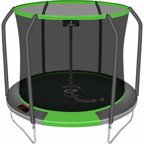 Каркасный батут с защитной сеткой Clear Fit серии GreenHop — отличаются комфортом и надежностью. Надежная рама из качественных комплектующих, прочная защитная сеть снабжена прямым креплением к прыжковому полотну и дополнительной защитой входа, наверху каркасное жесткое крепление, сеть не провисает и не слетает во время тренировок. Увлекательный, полезный и безопасный тренажер для всей семьи. Батуты серии GreenHop 6Ft и 8Ft поставляются в оптимальной для комфорта и безопасности комплектации: батут, верхняя защитная сеть и защитный мат. Размер батута 6 футов с прыжковой поверхностью 1.42 м и его легко разместить на небольшом участке, он подойдет для детских игр и для тренировок. Верхняя защитная сеть оберегает от падений, усиленная молния и дополнительная защита входа уберегут малышей от случайного входа или падения. Надежный каркас из гальванизированной стали, качественные комплектующие и погодостойкие метизы рамы делают батут безопасным, устойчивым, надежным, гарантируют полную защиту от коррозии и долгий срок службы. Максимальный вес пользователя батута GreenHop 6Ft — до 120 кг. Батуты GreenHop предназначены не только для детских игр, но и для фитнеса. Благодаря инновационной системе крепления защитной сети значительно увеличено рабочее пространство и надежность конструкции. Тренировки на батуте — это отличная аэробная нагрузка: улучшение общей физической формы, заряд положительных эмоций, улучшение работы кардиоваскулярной системы, развитие чувства равновесия и координации в пространстве для пользователей любого возраста. Занятия на свежем воздухе укрепляют иммунитет, снабжают организм кислородом, повышают выносливость как у детей, так и у взрослых. Именно поэтому мы используем только высококачественные комплектующие с большим запасом прочности. В большинстве случаев батуты данного типа устанавливаются под открытым небом, обязательные требования к материалам — это влагостойкость, термоустойчивость, в том числе и к низким температурам, переносимость ультрафиолетовых лучей и износостойкость. Конструкция для обеспечения безопасности выполнена из гальванизированной стали, диаметр стальных труб W-опор 34 мм и каркаса 38 мм. Каркас из труб толщиной 1.2 мм легко соединяется, опоры крепятся в приваренные к каркасу основания, все соединения изготовлены из высококачественных гальванизированных метизов. Качественная оцинковка всех труб конструкции исключает коррозию, увеличивает срок эксплуатации батута. Прыжковое полотно — это основной элемент батута. Материал прыжкового полотна Перматрон (Permatron) — эластичный материал, способный возвращаться в исходное состояние при постоянном воздействии с разным усилием. Термообработка волокон материала обеспечивает высокую прочность на разрыв и стрессоустойчивость материала. Это влагостойкий, эластичный термоустойчивый материал, не поддающийся распаду от ультрафиолета. Пружины выполнены из гальванизированной стали толщиной 3 мм, устойчивы к коррозии и долговечны, длина пружин 140 мм, для батута размером в 6.