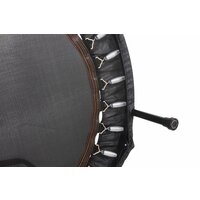 Батут для фитнеса с ручкой– специальный тренажер, который используется для проведения кардиотренировок, укрепления мышц и улучшения общей физической формы. Он состоит из прочной ткани, которая натянута на металлический каркас, пружин, которые позволяют прыгать и выполнять различные упражнения и специальной стойки, которая позволяет сохранять равновесие. Одно из основных преимуществ батута для фитнеса заключается в том, что он позволяет выполнять кардиотренировки без нагрузки на суставы (например, джампинг), что делает его идеальным выбором для тех, у кого есть проблемы с суставами или травмы. Кроме того, батуты для фитнеса способствуют улучшению кровообращения, увеличению силы и выносливости, а также помогают сбросить лишний вес. Существует множество различных упражнений, которые можно выполнить на спортивном батуте для фитнеса с ручкой. Некоторые из них включают в себя базовые упражнения, такие как прыжки в различных направлениях, отжимания и приседания. Более сложные упражнения включают в себя вращения, различные акробатические элементы, а также использование дополнительных снарядов, таких как гантели и резиновые трубки.