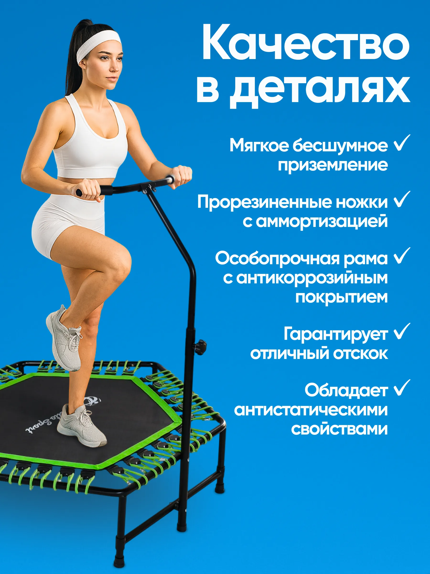 Прыжковое полотно и Пружины - мягкое бесшумное приземление, гарантируют отличный отскок