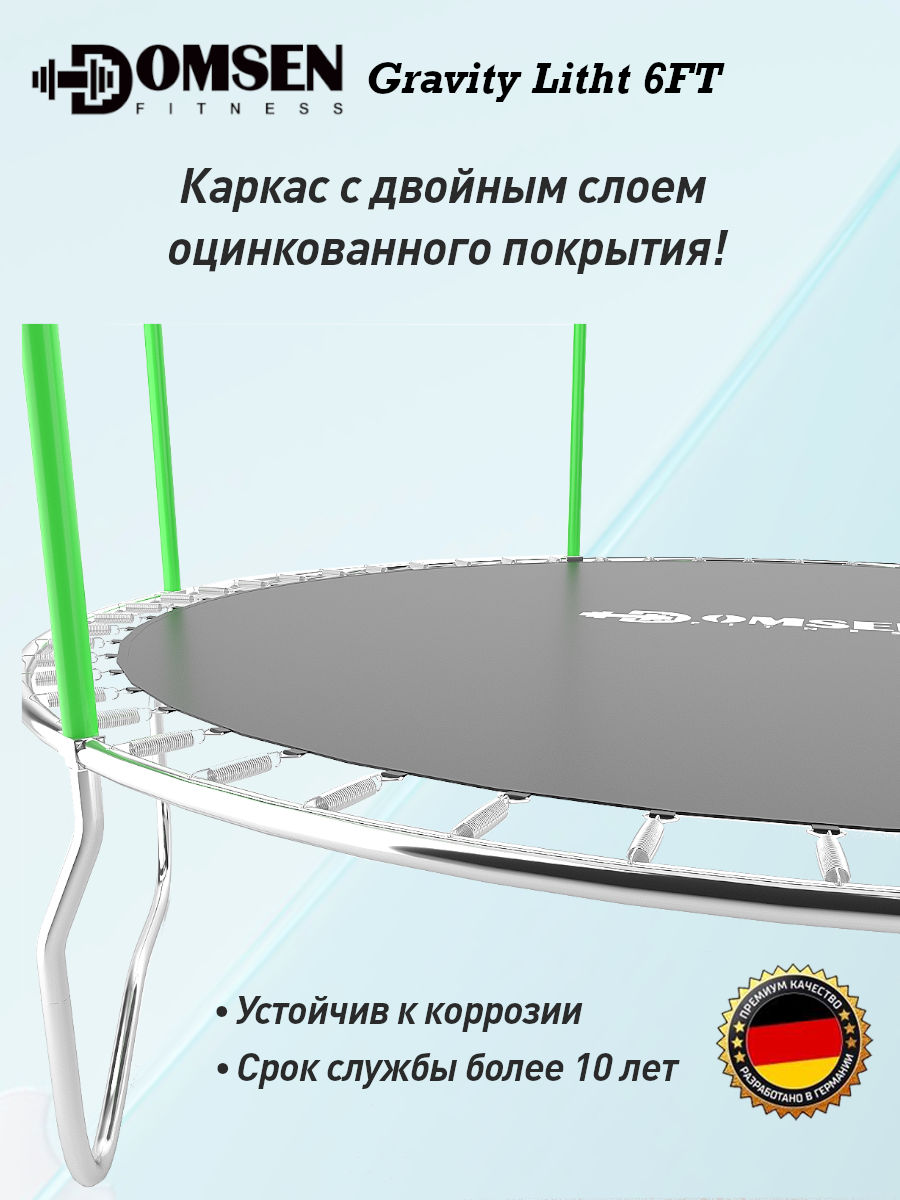 Купить Батут детский с защитной сеткой Domsen Fitness Gravity Light 6 FT (183 см) уличный, каркасный, для дачи, для улицы с доставкой по всей России. Батут детский с защитной сеткой Domsen Fitness Gravity Light 6 FT (183 см) уличный, каркасный, для дачи, для улицы: сравнение цен, характеристики, фото, актуальное наличие и цены.