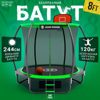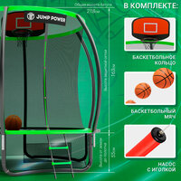 Купить Батут Jump Power Inside 8FT для детей с баскетбольным кольцом и мячом Зеленый 244 см, батут каркасный с сеткой с доставкой по всей России.