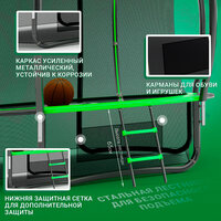 | Особенности | W-образные опоры, баскетбольное кольцо, защита пружин, нижняя защитная сетка, с защитной сеткой, с лестницей, с ручкой, складная конструкция |