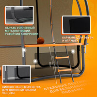 | Особенности | W-образные опоры, баскетбольное кольцо, защита пружин, нижняя защитная сетка, с защитной сеткой, с лестницей, складная конструкция |