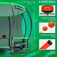 | Особенности | W-образные опоры, баскетбольное кольцо, защита пружин, нижняя защитная сетка, с защитной сеткой, с лестницей, складная конструкция |