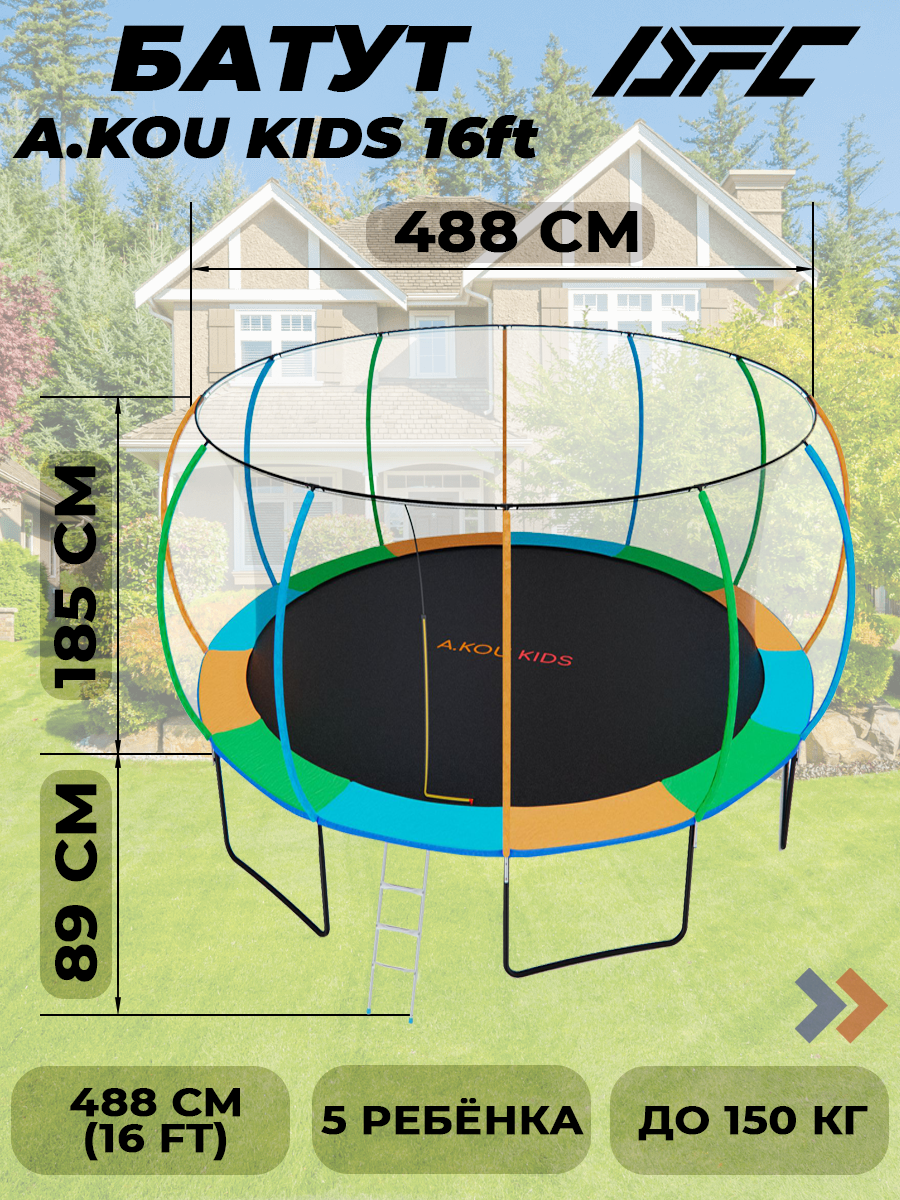 Батут с сеткой DFC A.KOU KIDS 16ft с лестницей: сравнение цен, характеристики, фото, актуальное наличие и цены.