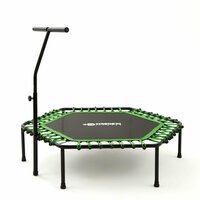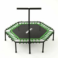 Батут для фитнеса Domsen Fitness TRF-15 – это спортивный батут для джампинга из качественных и безопасных материалов. Рама батута выполнена из высокопрочной стали толщиной 1,5 мм с двойным слоем порошковой покраски, что обеспечивает высокую степень надежности и долговечности, а также позволяет выдерживать интенсивные нагрузки. Максимальный вес пользователя в данной модели составляет 150 кг. Гарантия на все элементы и материалы батута составляет 2 года. Регулируемая ручка имеет 3 уровня высоты (68, 76 и 84 см), за счет чего легко настраивается под рост пользователя. Батут Domsen Fitness TRF-15 предназначен как для групповых занятий, так и для домашних тренировок. Основание батута состоит из 6 съемных ножек с резьбовым соединением высотой 30 см. Прыжковое полотно из материала Permatron соединяется с рамой с помощью 42 эластичных жгутов. Эластичные эспандерные жгуты выполняющие роль пружин и прыжковое полотно из прочного упругого материала Permatron, покрытое специальным антискользящим составом обеспечивают хорошую упругость и безопасность при тренировках Компания Domsen Fitness тщательно подходит к подбору материалов и комплектующих. В производстве используются только качественные и долговечные материалы из экологически чистого сырья. Основной упор при изготовлении идёт на безопасность и долговечность эксплуатации.
