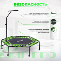 Батут для фитнеса EVO JUMP PRO представляет собой идеальное решение для тех, кто хочет заниматься спортом в домашних условиях. Он предназначен для джампинга – популярного вида фитнеса, который отлично укрепляет мышцы, увеличивает выносливость и развивает координацию. Этот каркасный батут прочен и устойчив благодаря качественным материалам и продуманной конструкции. Ручка обеспечивает дополнительную безопасность и устойчивость во время прыжков, что особенно важно для начинающих, регулировка ручки позволяет заниматься с комфортом пользователям с разным ростом. Батут EVO JUMP PRO для джампинга идеально впишется в любой дом благодаря компактным размерам и стильному дизайну. Его можно собрать и хранить даже в условиях ограниченного пространства. Надежный шестиугольный металлический каркас позволяет выдерживать нагрузку до 120 кг. Полотно, изготовленное из износостойкого перматрона, фиксируется прочными резинками, которые хорошо растягиваются и не создают шума. Батуты для джампинга становятся все более популярными благодаря своей эффективности и многочисленным положительным отзывам.