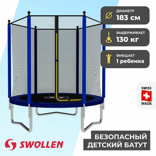 Батут SWOLLEN Lite Outside ZIP 6 FT (183 см) (Blue) / каркасный / с защитной сеткой / детский / для детей / уличный / для улицы / для дачи / для взрослых / большой / спортивный / для дома