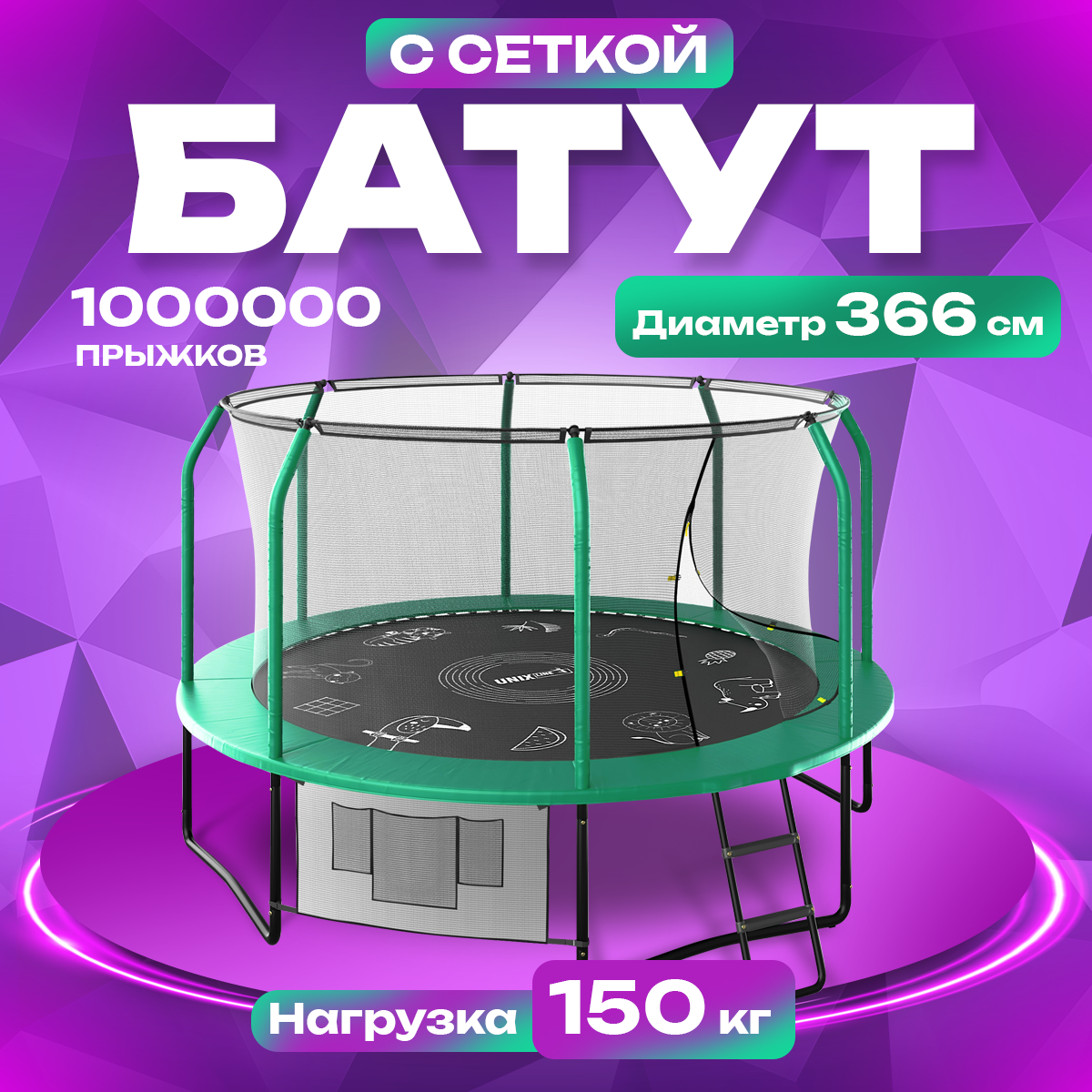 Помимо верхней защитной сетки, все батуты премиального модельного ряда UNIX line оборудованы нижней сумкой для хранения обуви и лестницей для удобства пользования. Специальные крепления батута к земле (колышки) не входят в комплект, рекомендуем приобрести отдельно.