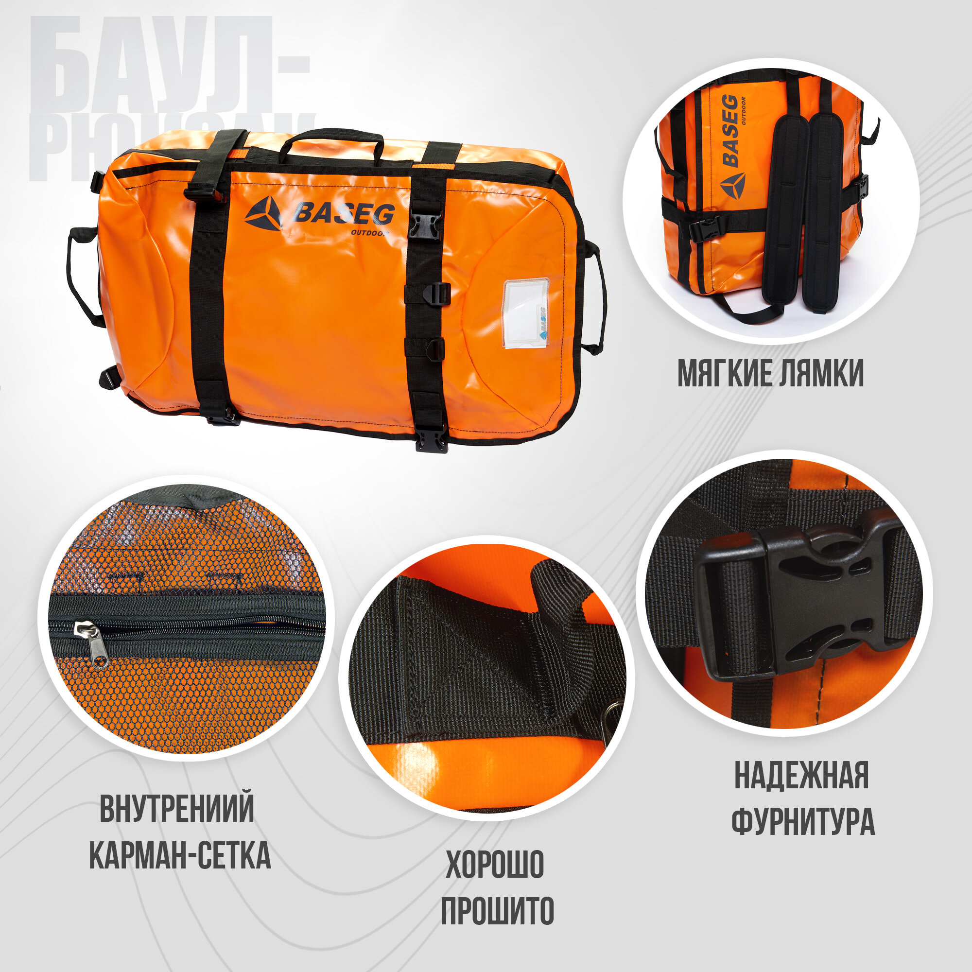 Выбирая баул-рюкзак транспортный влагозащищенный 60л, ПВХ Baseg Pro, вы получаете надежный и функциональный аксессуар, который станет незаменимым помощником в путешествиях и повседневной жизни.