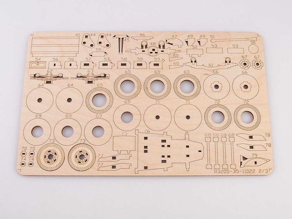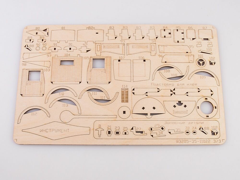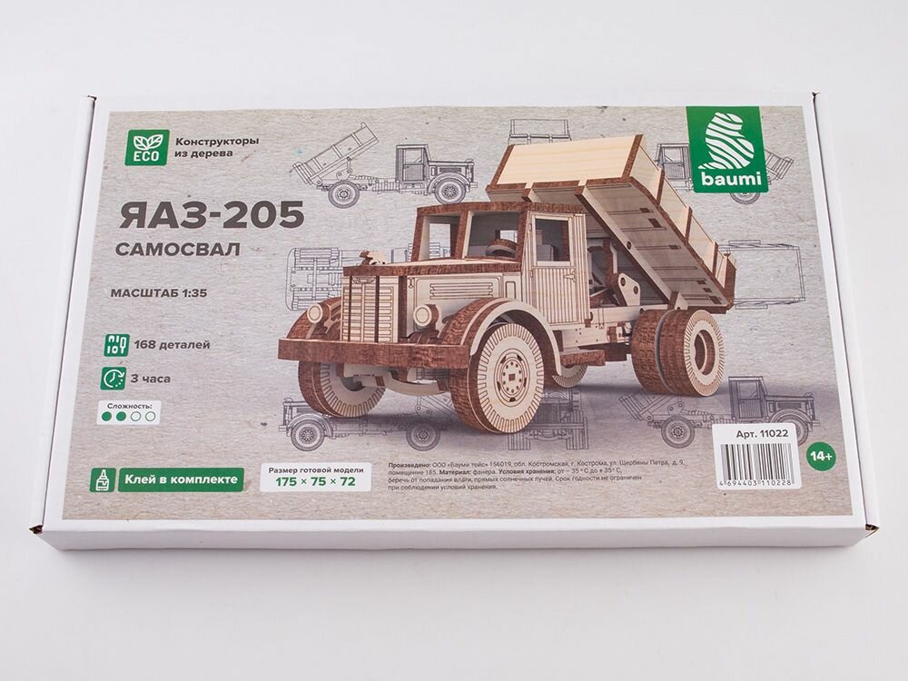 Конструктор из дерева Самосвал ЯАЗ-205 в масштабе 1/35 Размер готовой модели 175*75*72 мм Сложность ** Количество деталей: 168 Время сборки: 3 часа Клей для сборки в комплекте!