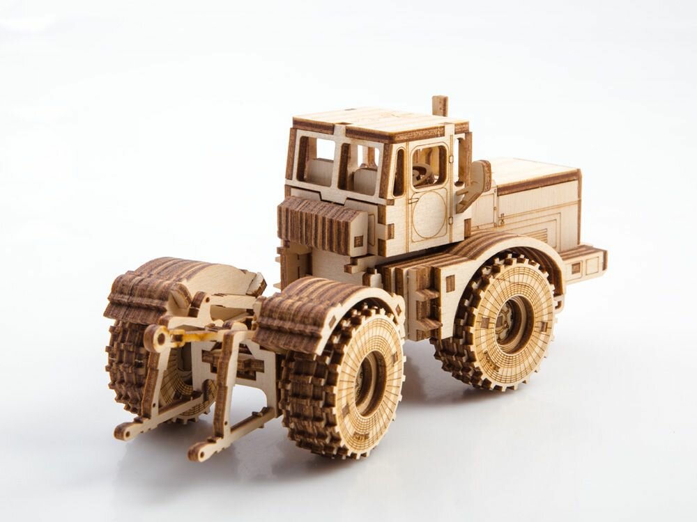 Конструктор из дерева Трактор К-700 в масштабе 1/43 Размер готовой модели 173*67*80 мм Сложность ** Количество деталей: 147 Время сборки: 3 часа Сборка без клея!