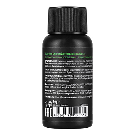 Каучуковая основа базы для гель-лака UNO Rubber не содержит агрессивных химикатов и не вредит ногтевой пластине. Гипоаллергенное покрытие не вызывает жжения при полимеризации, что делает его безопасным для использования.