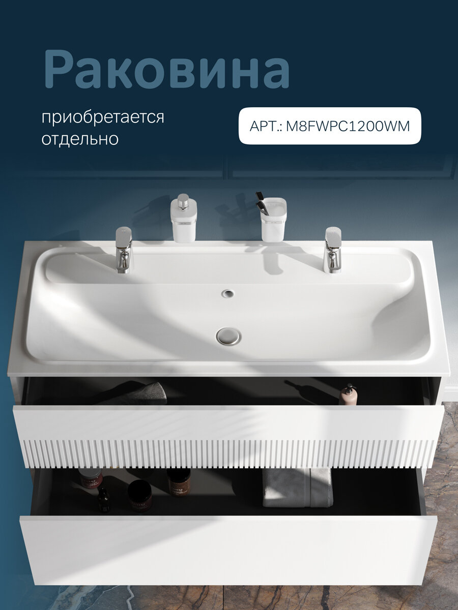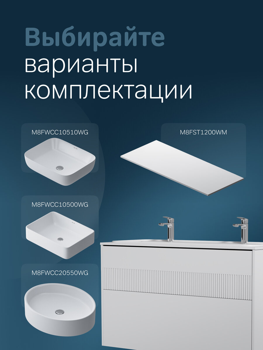| Дополнительная информация | Приобретаются отдельно: комплект ножек арт. M8FLEGS015GM, столешница для установки накладной раковины, арт. M8FST1001WG |