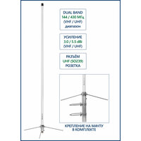 Базовая DUAL BAND антенна RADAXO A-100 с круговой диаграммой направленности, работающая одновременно в двух УКВ-диапазонах VHF/UHF (144/430 МГц).