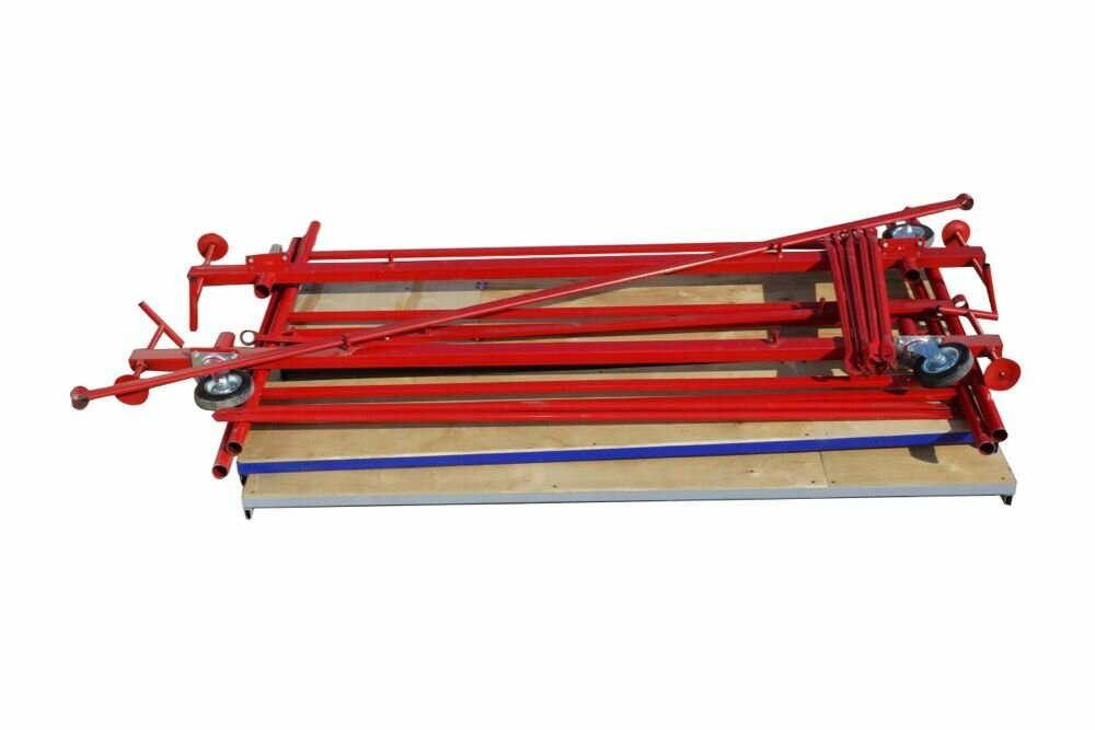 Легко собирается и разбирается. Изготавливается из электросварной трубы диаметром 42 мм. Все детали окрашиваются по технологии порошковой окраски, в итоге получается покрытие с высокими защитными и декоративными свойствами. Настил изготовлен из фанеры толщиной 5 мм и имеет люк для безопасного и удобного перемещения во время работ. Выдерживает нагрузку до 250 кг.
